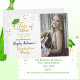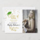 Graduation party invitation in green school colors. Created with green cap, green and white balloons and faux gold glitter, with space for your own photo. All text front and back already formatted and ready for your own text details. Photo credit: Pixabay image by Lorri Lang