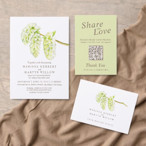 Green catkins aspen watercolor art weddingDesigned by Sarah Trett