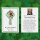 Remember your loved ones in prayer with this beautiful traditional Catholic Funeral prayer card with and image of the green Celtic Irish Cross with a red and white roses bouquet. All text and fonts can be modified.