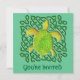 Custom two-sided invitation cards. Front has customizable "You're Invited". Back has invitation information--enter your event title, date, time, location, and a personal message. Sea turtle with a Celtic knotwork pattern shell and a celtic knot background. Embossed style.