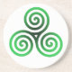 A large green spiral Celtic triskele, or triskelion. This is an ancient symbol dating back to Neolithic times in Western Europe, and is an important emblem of Celtic culture.