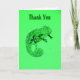 Thank You card with original design of watercolour and ink illustration by artist Sacha Grossel of brightly coloured green, patterned chameleon against a bright, apple green background. This quirky illustration of this reptile is cute and funny and for lizard and animal lovers everywhere.