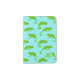 Colourful passport colour patterned with green chameleons on a bright blue background. Personalise by adding your initial to the monogram circle area.
