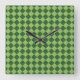 Green Checker Diamond Pattern Square Wall Clock
