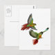 Painting of two green cheek conures on a cool postcard by Carolyn McFann. See our matching conure postage too.
