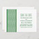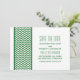 Chic and modern Chevron Border Save the Date Announcement featuring a simple chevron pattern border in dark green and white. This stylish design will set the tone for an elegant wedding. Easy to customize, simply add your wedding details in the text fields provided. Click "Customize It" to find more personalization options.