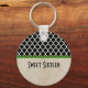 Modern and stylish Chic Quatrefoil Sweet Sixteen Keychain featuring a trendy moroccan pattern background, a vintage paper look background and a pair of thin green stripes. This hip and elegant keychain is perfect for a super fun sweet 16 party favor! Easy to customize, simply add your own personalized text. Click "Customize It" to find more personalization options.