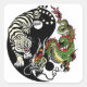 green Chinese Dragon and White Tiger YIN YANG Square Sticker