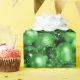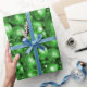 A shiny, glittering Christmas wrapping paper featuring a festive pattern of green Christmas tree decorations and baubles to add some glitz and glamour to your Christmas gift wrapping this holiday season.