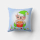 Green Christmas elf & Christmas gift on light blue Throw Pillow