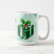 Enjoy your morning coffee during the holiday season with this festive Green Christmas Gift Coffee Mug. Coffee mug design features a vibrant green Christmas gift adorned with holly berries and falling snowflakes against an elegant scroll and leaves background with the saying "My cup of cheer". Additional gift and holiday items available with this design as well.