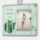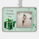 Celebrate love and holiday cheer with this Green Christmas Gift Framed Photo Ornament, featuring a festive ribbon and bow adorned with holly berries and sparkling glitter vines. Your favorite photo is beautifully highlighted with festive typography, creating a timeless holiday photo keepsake perfect for commemorating our first Christmas. A charming addition to your Christmas decor, this ornament captures the joy and warmth of the season.