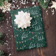 This is a roll of holiday wrapping paper in classic winter pine green with a modern and festive string lights and "fa la la la" script pattern design..