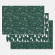 This is a set of three different wrapping papers in classic winter pine green with patterns of rustic winter trees, Christmas string lights, holly and joy.
