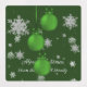 Share your holiday baking with friends and family with this Green Christmas Ornaments Baking Labels. Label design features a trio of hanging Christmas ornaments with falling snowflakes and a dark green background with a space you can personalize with your own holiday greeting and family name. Additional gift and home decor items available with this design as well.