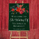 This gorgeous Christmas wedding welcome foam board features a beautiful watercolor of red poinsettia flowers and pine leaves for the holidays. An elegant winter wedding sign in hunter green for the holidays. Pretty poinsettia floral reception decor to welcome your guests.
