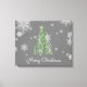Make your walls festive this holiday season with a Green Christmas Tree and Snowflakes Stretched Canvas Print. Canvas print design features a vibrant artistic Christmas tree with falling snowflakes and a dark gray background. Additional gift and holiday items available with this design as well.