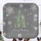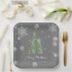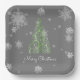 Elevate your holiday gatherings with this Green Christmas Tree and Snowflakes Paper Plates, a stylish addition to your festive table. These sturdy plates feature a festive design with a radiant Christmas tree and white snowflakes, accented by fancy flourishes and falling snow against a sophisticated gray background. The elegant script displaying "Merry Christmas" adds a touch of holiday cheer. Perfect for serving treats, these plates combine functionality and charm to enhance your seasonal celebrations with a refined, wintry vibe.