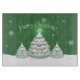 Prepare meals during the holiday season with the help of a Green Christmas Tree Cutting Board. Cutting board design features a trio of snow covered decorated Christmas Trees against a green background and falling snowflakes. Additional gift and holiday items available with this design as well.