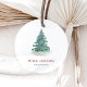 This green Christmas tree ornament is perfect for a rustic merry Christmas holiday celebration. The design features a beautiful hand-painted green and white Christmas tree.