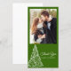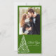 Thank your guests for gifts received after a festive December engagement party, bridal shower or wedding with the elegant Green Christmas Tree Thank You Photo Card. Change the background color and font, if desired. This classy custom wintery thank you photocard features a swirly white xmas tree design on a green background.