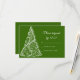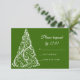 Customize the festive Green Christmas Tree Winter Wedding RSVP Response Card with your December marriage reply date. This elegant custom wintery r.s.v.p. card features an intricate white Christmas tree design on a green background.
