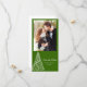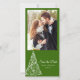 Announce your December nuptials when you customize the festive Green Christmas Tree Wedding Save the Date Announcement Photo Card with your own personal photograph, names and marriage ceremony date. Change the background color and font, if desired. This elegant custom wintery marriage ceremony and reception keep the date photocard features a swirly xmas tree design on a green background. Available as a printed invitation for mailing or as a digital download for easy sharing digitally online.