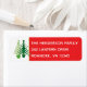 These return address labels are red and white in color with two green and gold simulated foil Christmas or Holiday trees on it. The white name and address info is the same font that s used on the matching greeting card and can be personalized how you want.