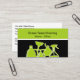 Cleaning service business cards with simple yet powerful graphic design including black, green and white colors, image of cleaning supplies symbol, and eye catching graphic design that stands out and makes a strong first impression. Designed as a business card template for a house or office cleaning service, housekeeper, or professional cleaning business with a green theme.