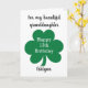 A personalized 13th birthday St. Patrick's Day card featuring a cloverleaf on the front. You will be able to easily personalize the front with the birthday recipient's details. The inside card message can also be personalized. This personalized St. Patrick's Day birthday card would make a unique card keepsake for your granddaughter, grandson and more.