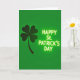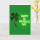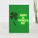 This card features a deep emerald green background that feels like a late-night celebration under glowing lights 💚. On the left, a large four-leaf clover appears as a dark silhouette, with heart-shaped leaves and a slim stem that stands out against the green. A faint rim of light traces the clover’s edges, like a quiet glow that softens the shadow and gives it a gentle, affectionate touch. On the right, bright lime-green lettering reads “HAPPY St. PATRICK’S DAY,” stacked in three lines and set to balance the clover. The words look like neon, with an inner shine and a soft halo that makes them seem close enough to reach for ☘️. The layout leaves comfortable space between the clover and the text, like two friends leaning toward each other without crowding. The final detail is the subtle glow around the letters and the thin illuminated outline hugging the clover’s curves.
