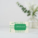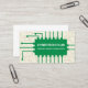 A simplified and diagrammatic computer chip is superimposed on a circuit board background on this business card for a high tech company.