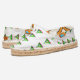 These shoes are amazing, well constructed, vivid color durable fabrics, can wear comfortably without socks…and pick your liner color. I ordered several and wore all Summer into Fall. A GREAT choice and hundreds of fabrics to choose from! Thanks so much to the designers…a real winner!! Order one size up to wear with socks. Usual size is snug at first but does stretch after several earrings. .
