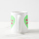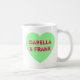Customizable pale green conversation heart shape on a mug. You can increase or decrease the text size to fit a couple's names and create a personalized Valentine's Day message.