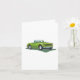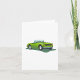 A green convertible car with its roof down. This design looks really effective on these Greeting Card