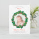 Introduce the birth of your beautiful baby girl or baby boy to your family and friends with this clean, simplistic and modern green cranberry wreath foliage and faux wood baby birth announcement photo card. We've hand painted this beautiful green cranberry wreath foliage for you to place your precious new baby's photo. A clean and modern layout that allows for your new baby photo to take centre stage. A script handwriting style typography text "welcoming with love " is displayed at the top off the baby announcement card. The reverse side features a a rustic wood texture faux wood background with a wreath monogram place in the centre of the card. All illustrations contained in this modern clean baby birth announcement card are hand-drawn original artwork by Moodthology. You can customize the text size, text colour, font and layout for your own personal design preference.