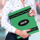 Green crayon school binder for a student. Personalize it by adding your name and class subject. Great for a student or teacher.