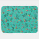 Green Baby Blanket with Personalized Name and Mushrooms, Flowers and Greenery Pattern.