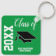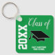 Add your graduation year for a unique high school senior gift idea. Order them for the entire high school graduating class. Perfect incoming incoming high school seniors as back-to-school gifts. If you are looking for graduation party favors, ideas, or small graduation gift ideas gifts then these green custom keychains are perfect. Save money when you order in bulk for graduating high school seniors. Green, black, and white school color design graduation items are hard to find. Match with fun green graduation cap school color napkins, plates, and invitations.