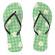 Green Daisy Plaid Gingham Check Flower Pattern Flip Flops