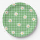Green Daisy Plaid Gingham Check Flower Pattern Paper Plates