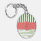 Green Damask, Green Stripes, Striped, Monogram Keychain