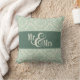 Green Damask "Mr & Mrs" pillow, personalized Throw Pillow