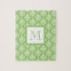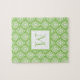 Green Damask Pattern 1 with Monogram Jigsaw Puzzle