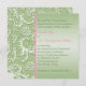 You can edit the design on the back through our Design Tool and selecting "Layers." By customizing the back of your Green Damask With Pink Wedding Invitation, you can have a more complete invitation and present more information to your potential guests, but don’t worry - you don’t have to add a design to the back if you prefer to just have a design in the front.