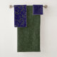 Green and dark blue leaf pattern bath towel set. This set showcases a vibrant and appealing design with its beautiful green and dark blue foliage.