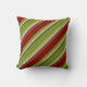This throw pillow design features a striped pattern having colors like green, dark red, sky blue, and goldenrod.