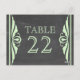 Elegant and chic Deco Chalkboard Table Number Postcard featuring a trendy chalkboard texture look background and a pair of light green art deco swirl borders. This lovely table card is perfect for an art deco 1920's themed wedding. Easy to customize, simply add the appropriate table number(s) in the text field provided. Click "Customize It" to find additional personalization options.