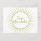 Sophisticated and elegant Deco Retro Save the Date Postcard in lime green featuring a circular art deco ornamental sunburst design. Easy to customize, simply add your wedding details in the text fields provided. Click "Customize It" to find more personalization options.