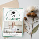 This custom green dental school graduate announcement card features a tooth wearing a graduation cap for a class of 2025 dentistry graduate above your student photo. Customize with your graduating year under photograph for a great personalized dental hygienist, orthodontist, or dentist graduation card.